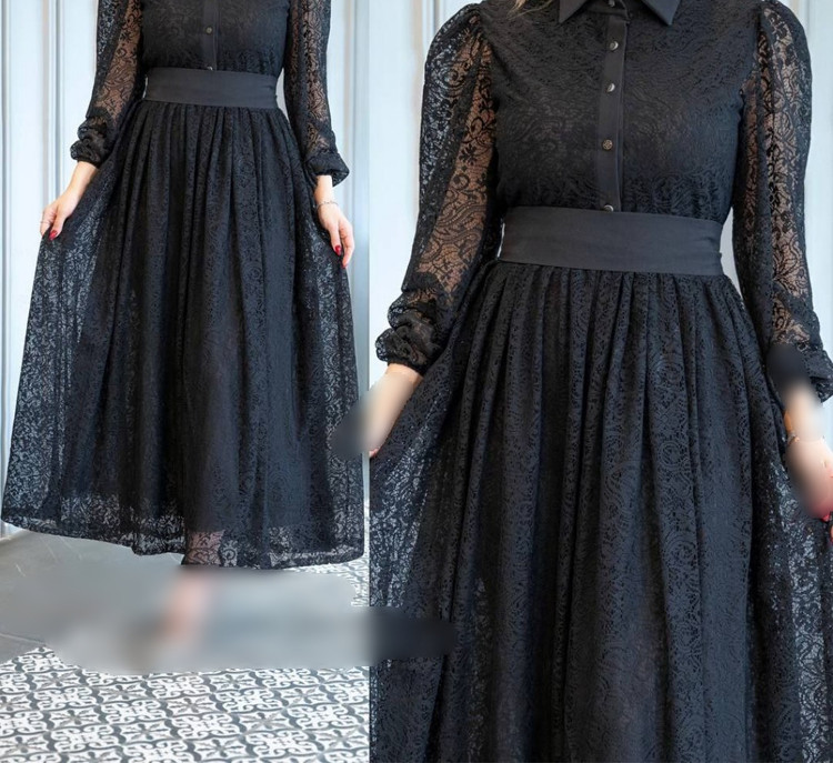 👗 جنس : دانتل و آستر پاناما(قد حدود ۱۳۵)(کمربند داره)(دکمه ها کاربردی)