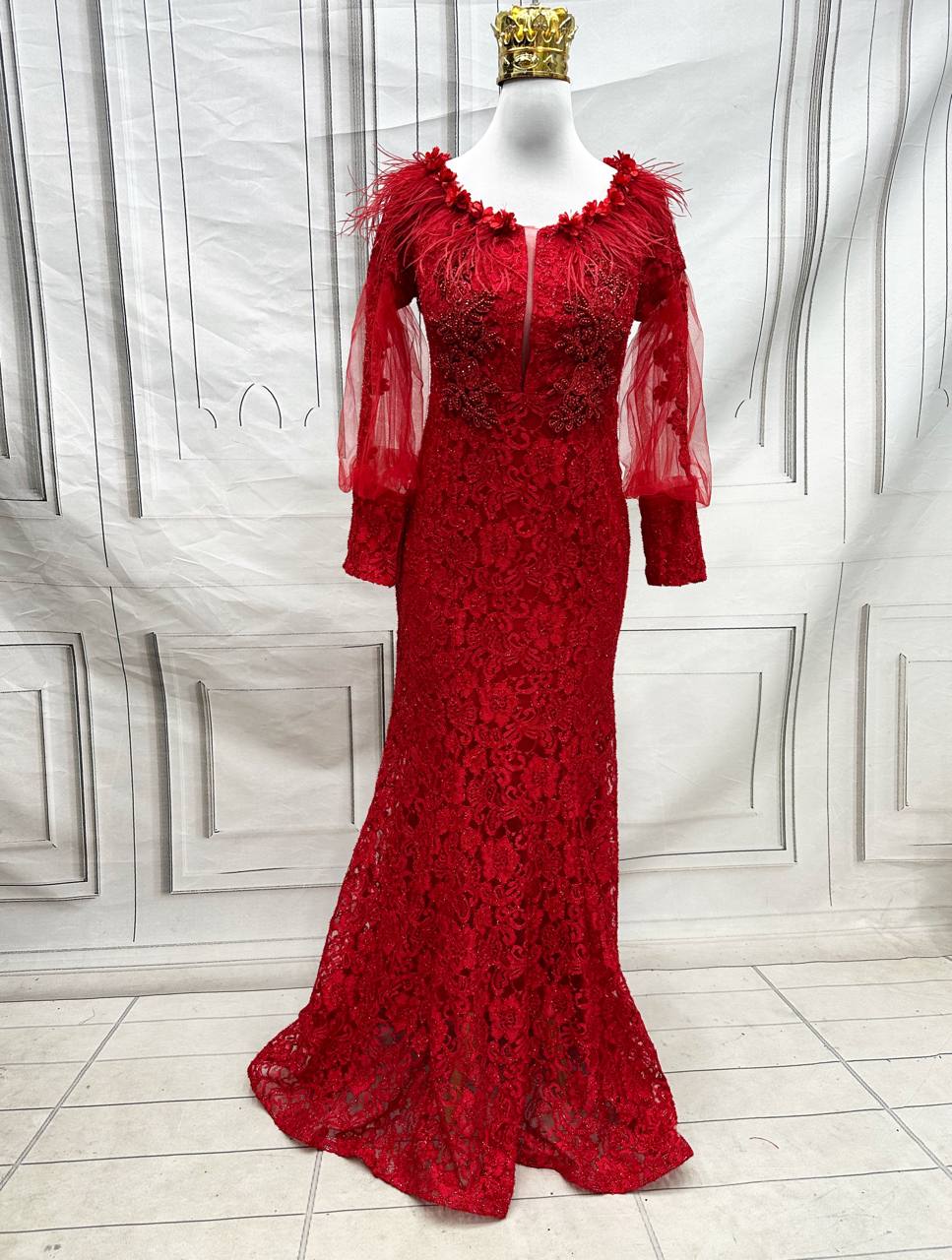 پیراهن مجلسی مزونی زنانه جنس دانتل با خرجکار سنگدوزی شده