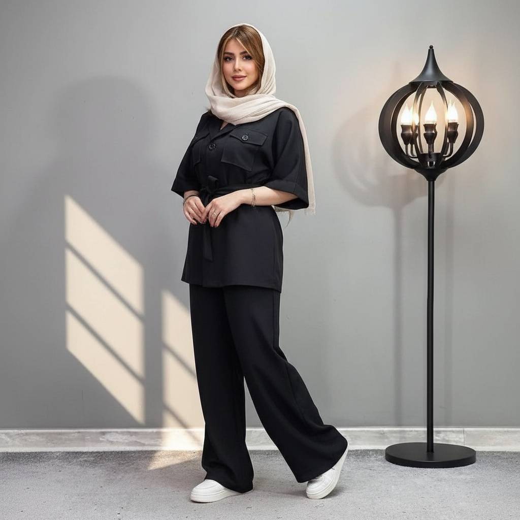 ست شومیز و شلوار بیرون پوش دخترانه رنگبندی مشکی ست مانتو شلوار زنانه جنس ابروبادی سایزبندی 38 الی 44 مانتو شلوار بهاره