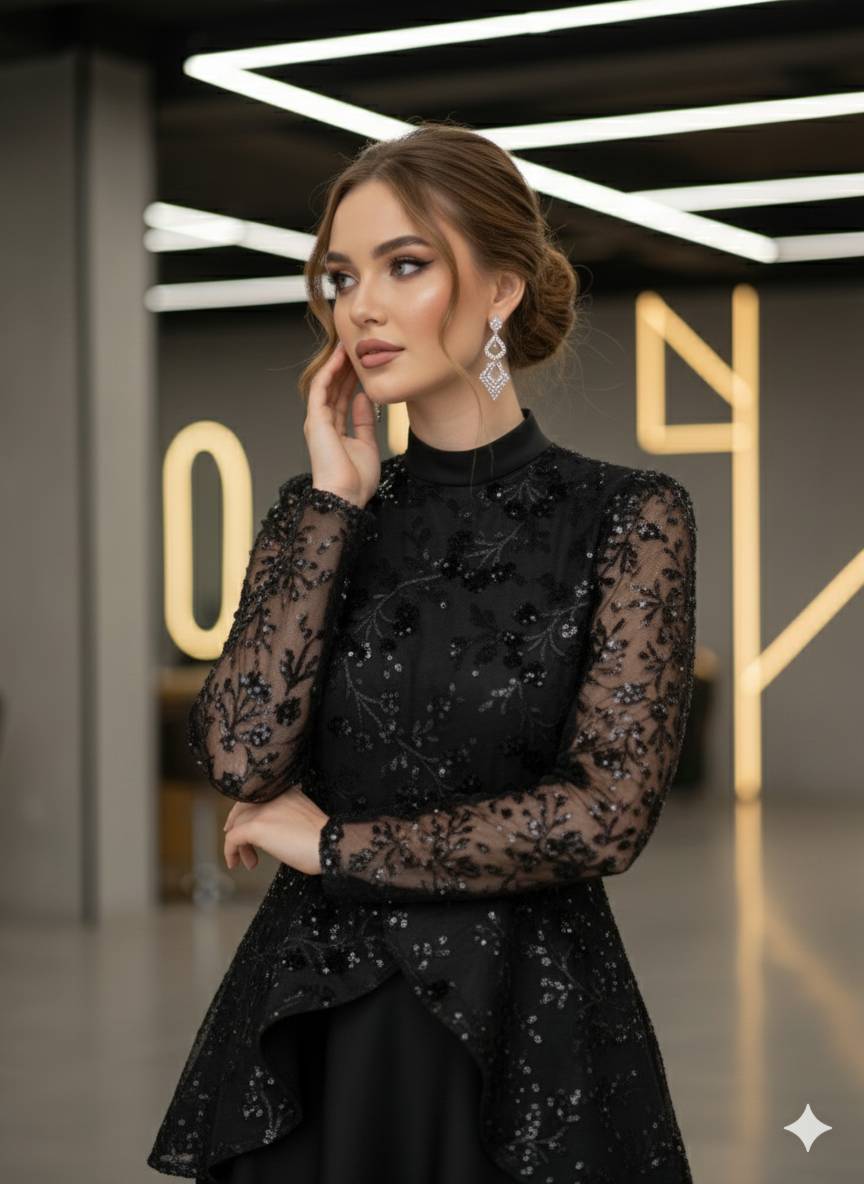 لباس مجلسی مزونی زنانه جنس تور منجوق دوزی شده پیراهن مجلسی دامن کلوش دار ماکسی مجلسی جدید سایزبندی 44 الی 52